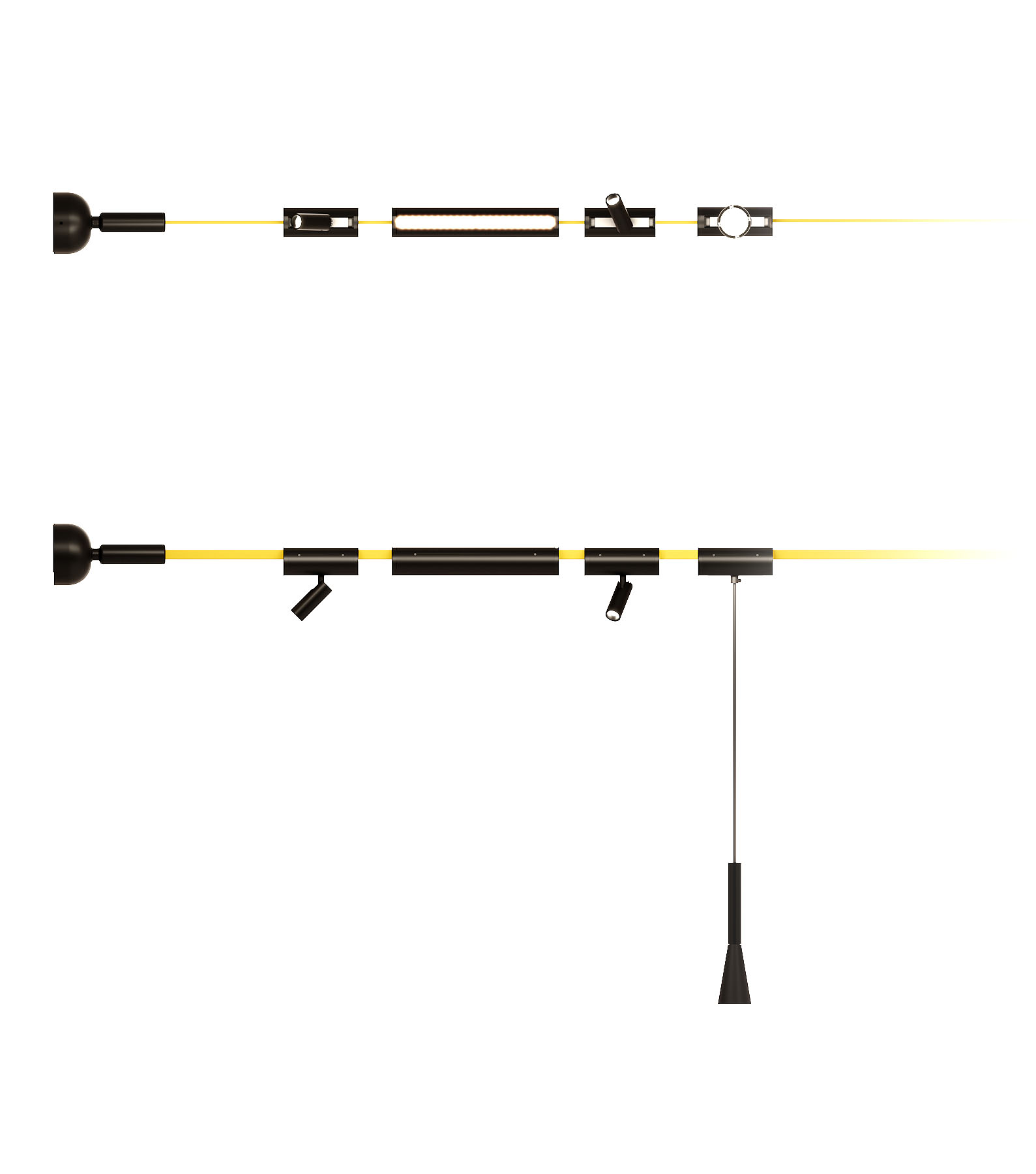 The light is generated by different types of specific light fixtures, either fixed or adjustable, directly attached or suspended from the power cable, and can be easily positioned anywhere to meet various design needs.