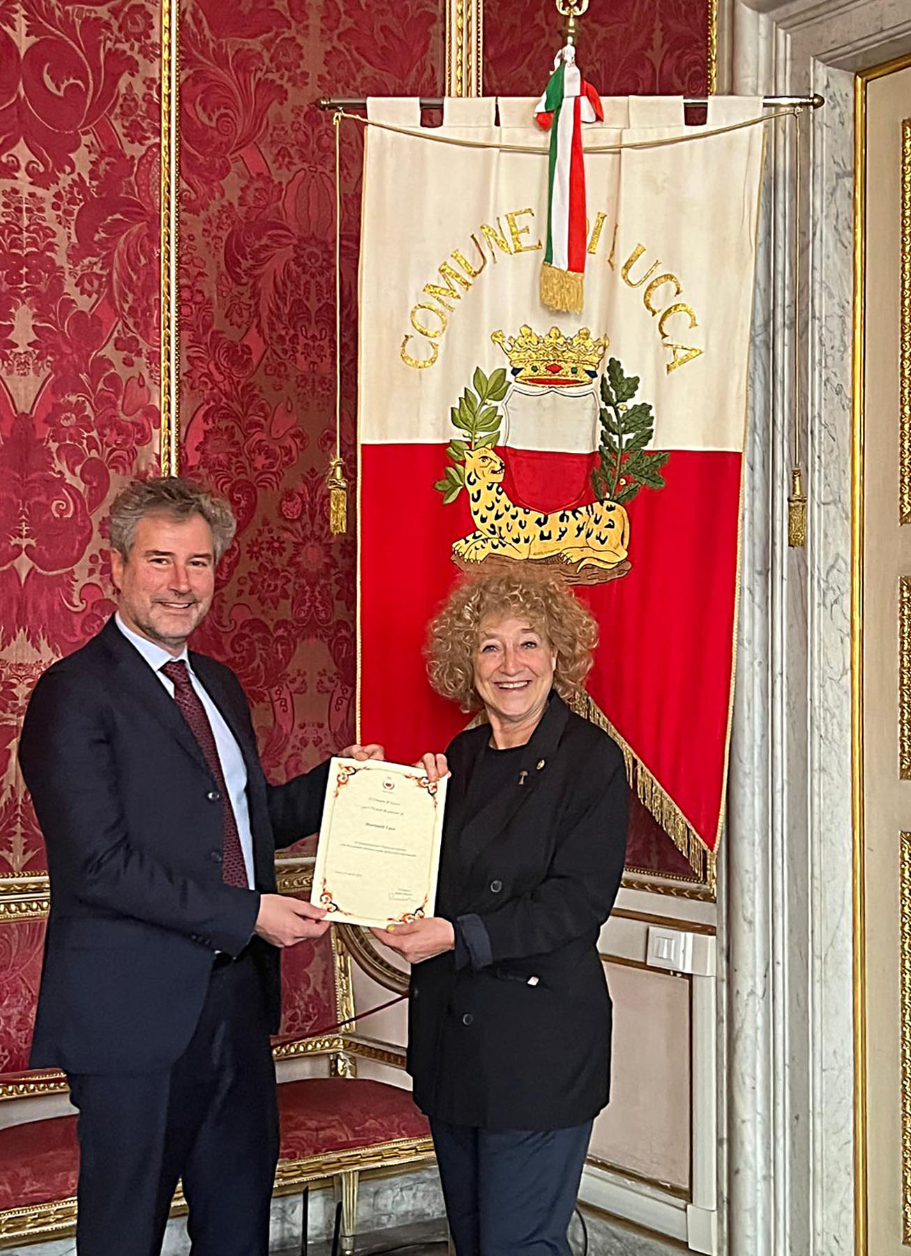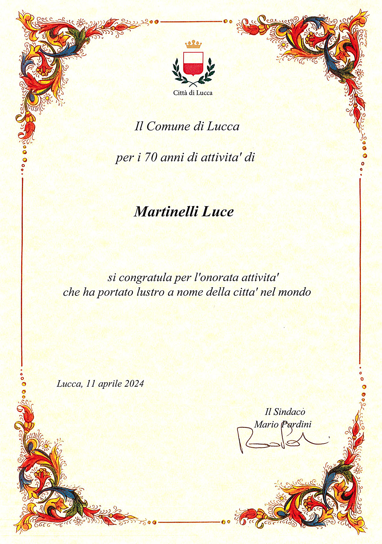 The City of Lucca gave Martinelli Luce the award to commemorate its seventy years of dedication to the designer lighting industry. We are proud in our role in shaping the course of design history and taking part to the "made in Italy" label, synonymous with quality in the global lighting industry. Our strong identity and our roots, which include ongoing development in the center of Lucca, have made all this possible. We are grateful to Paola Granucci, the municipal councilor for commerce and innovation, and Mayor Mario Pardini.