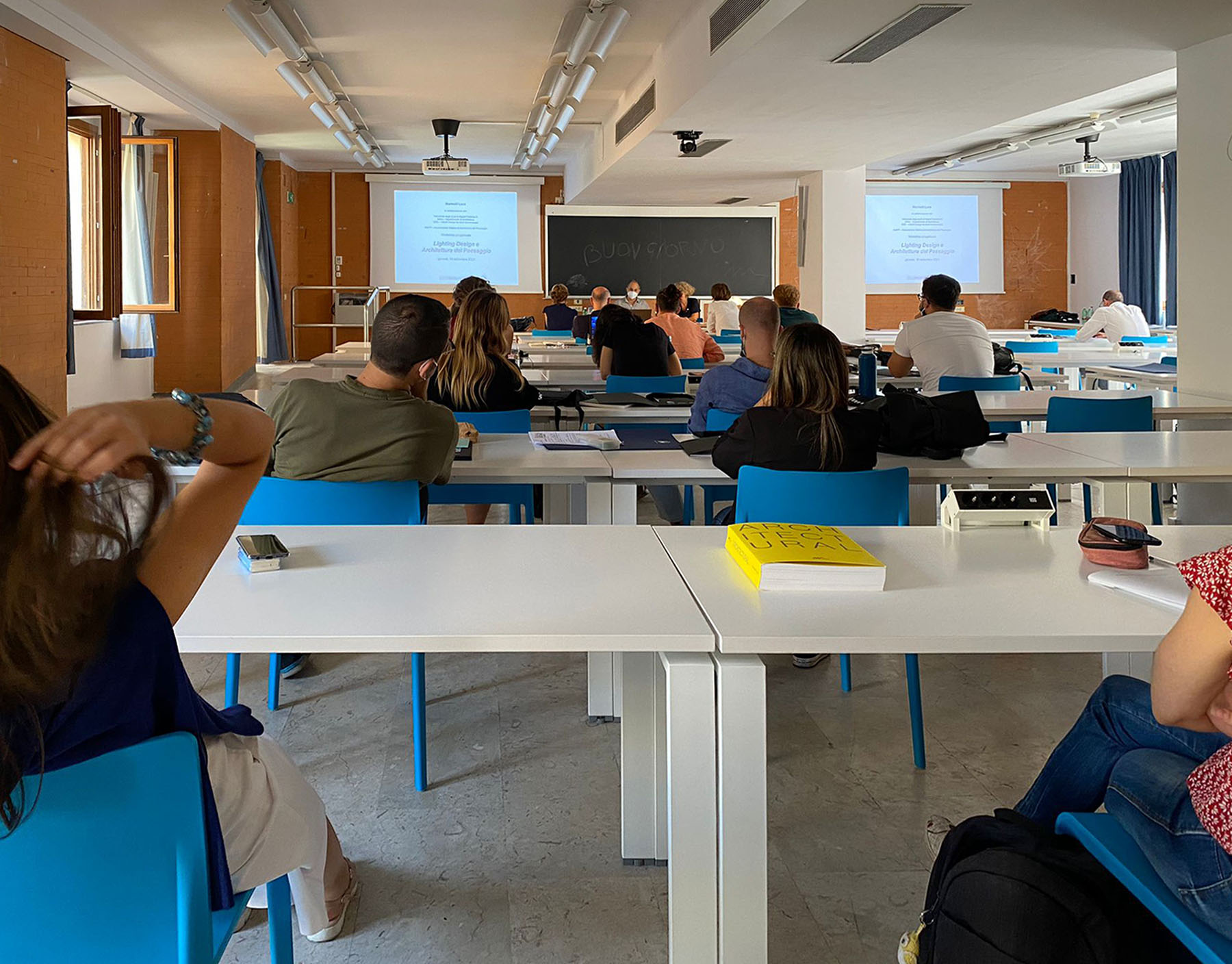 At the University of Naples Federico II, Department of Architecture, the workshop "Lighting design and Landscape Architecture" was held on 16 September, in collaboration with the University of Naples Federico II, Department of Architecture, the AIAPP (Italian Association of Landscape Architecture), the DBE - CdLM Design for Built Environment and the patronage of the Order of Architects of the Province of Naples.