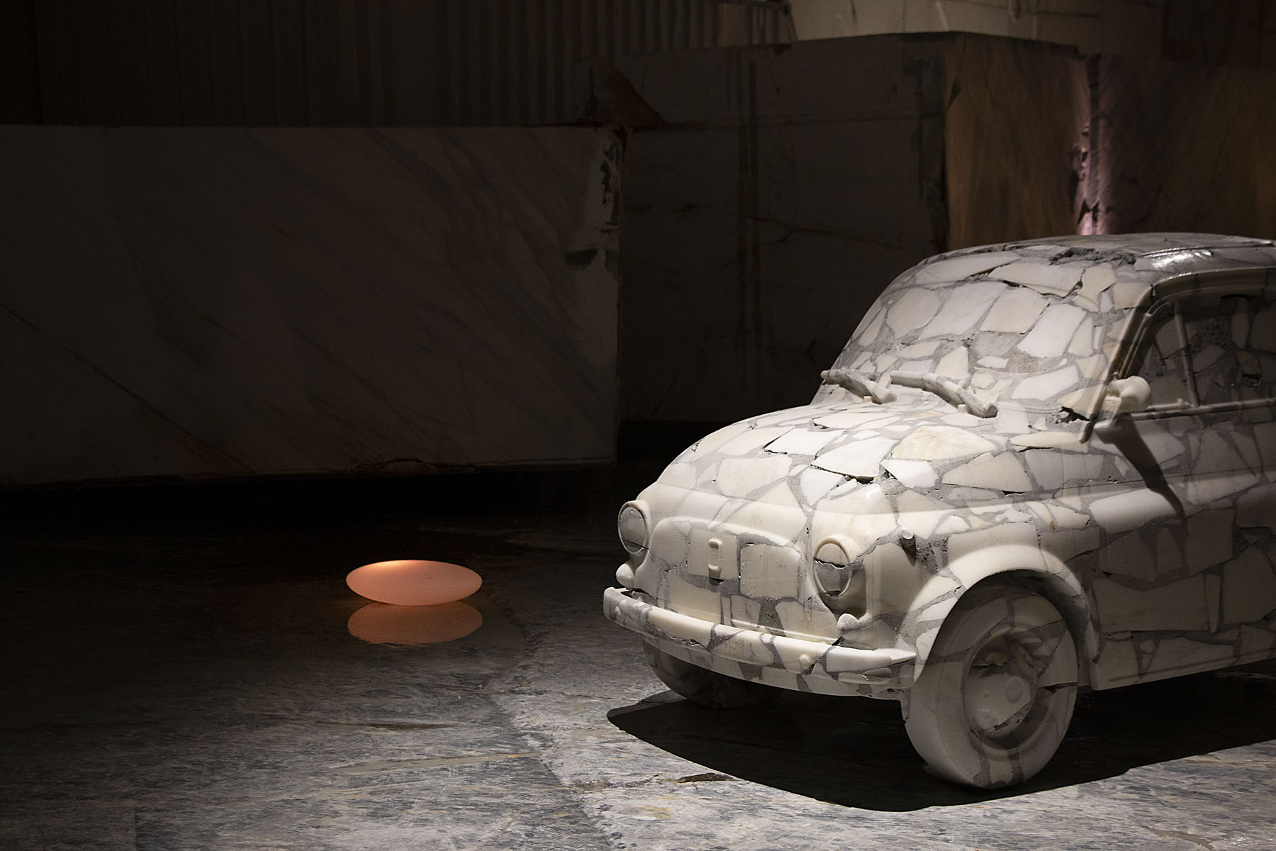 We started at Litix, where the material is still shaped by hand and with intention. From there, we moved to the quarry, deep into the marble. There, Wunderkammer took place, a temporary exhibition that brings together fragments, gestures and shapes.
