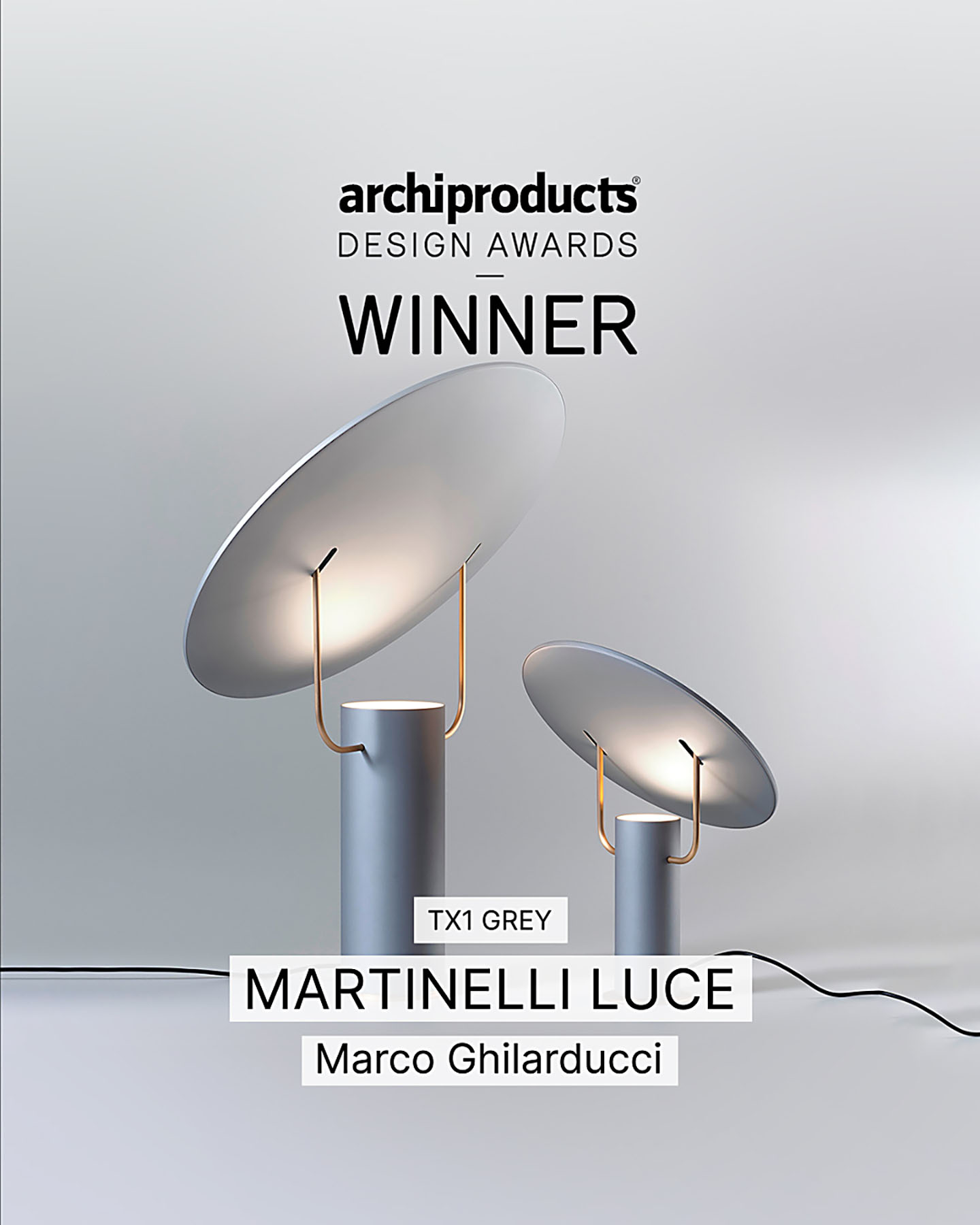 We are proud to announce that our lamp Tx1 designed by Marco Ghilarducci is the winner of the Archiproducts Design Awards 2022 for the Lighting category.