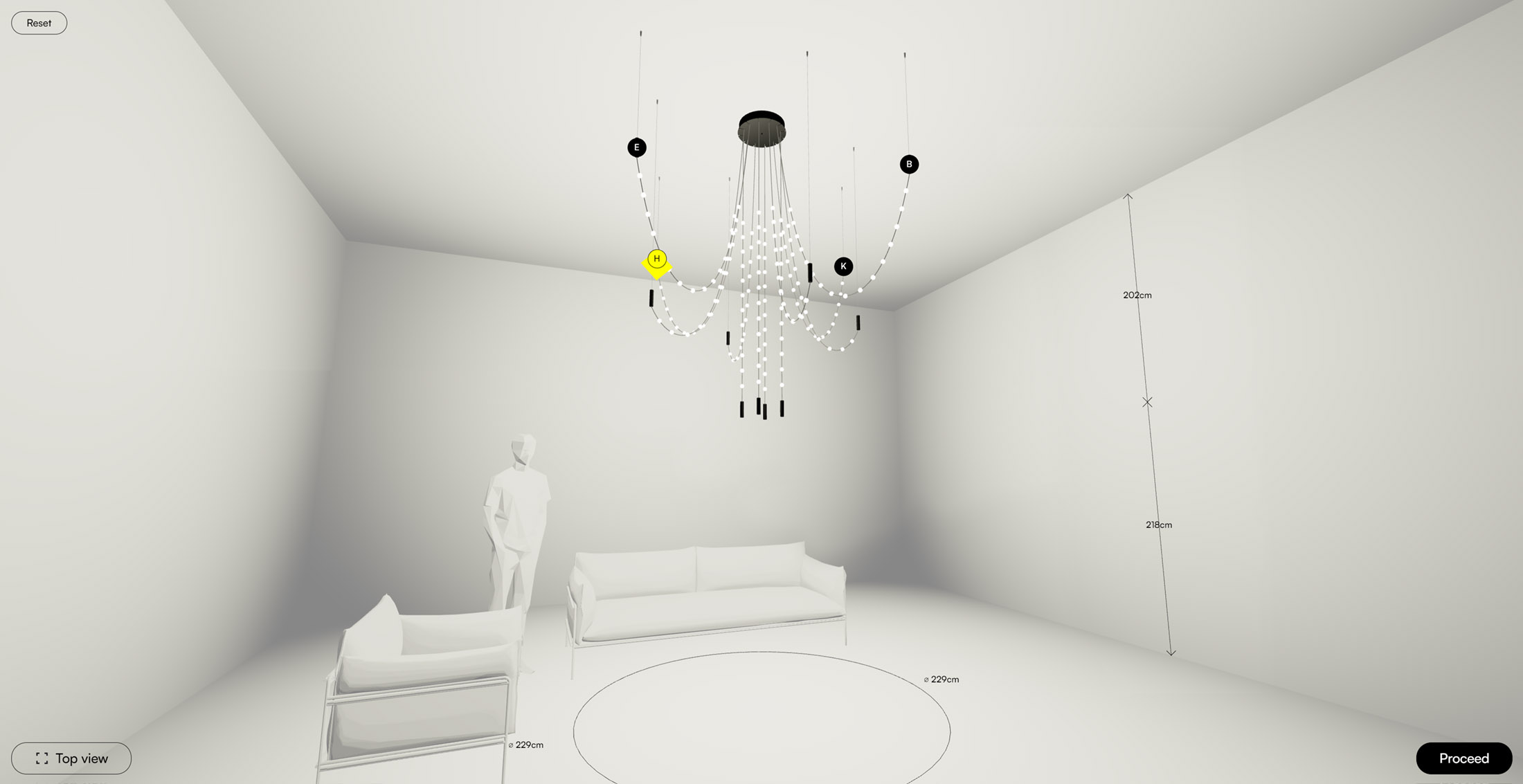 Multidot se prête à des solutions de design infinies et le configurateur vous aide à le faire, un outil intuitif pour vous aider à réaliser la lampe dont vous avez besoin.