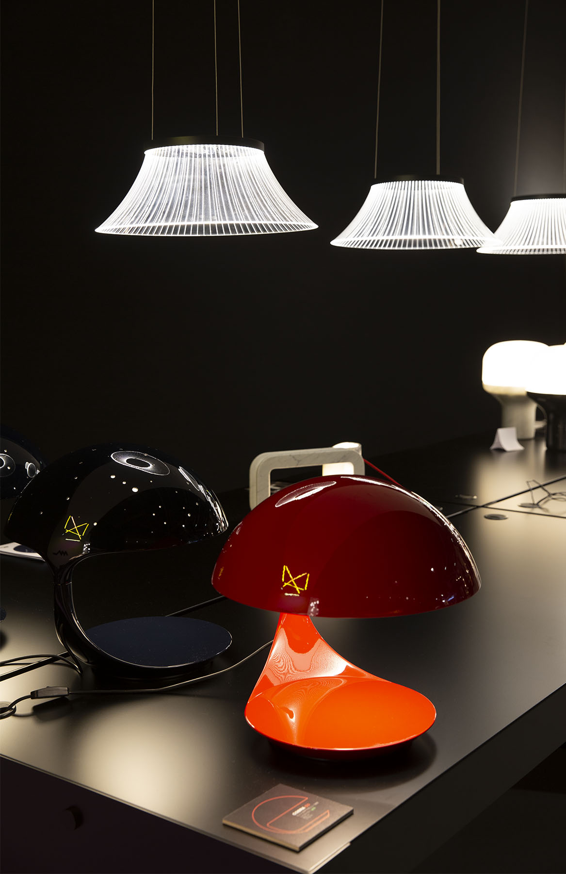 Le rendez-vous habituel du mois de janvier à Maison&Objet se confirme comme étant le meilleur salon pour lancer les toutes dernières nouveautés Martinelli Luce, avec entre autre une version "cosmique” de la lampe Cobra, réalisée par Emiliana Martinelli pour rendre hommage à son père Elio Martinelli. En effet, Cobra Scorpius est une version très spéciale, dédiée au signe du Scorpion - signe astrologique de Elio Martinelli – avec l'une des constellations parmi les plus lumineuses et les plus belles à observer. La nouvelle lampe Cobra est produite couleur bleu nuit uniquement et elle se caractérise par une série de trous sur la calotte qui représente donc la constellation. Parmi les nombreuses nouveautés présentées à Paris : Pipistrello dans deux nouvelles variantes – vert agave et laiton satiné – et Elmetto dans une superbe version dorée.