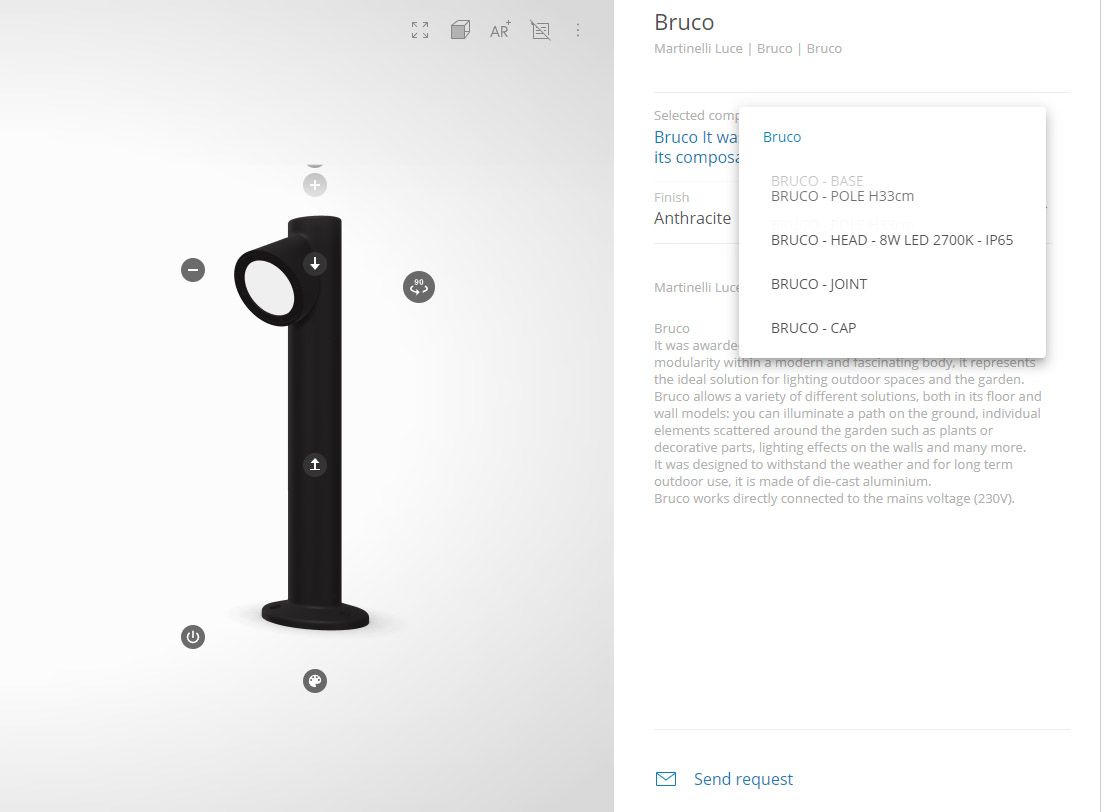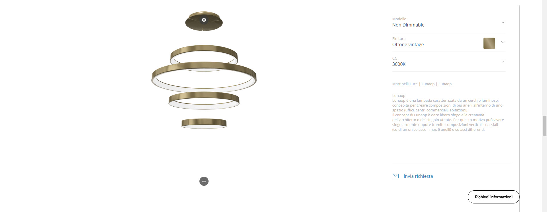 Usare il configuratore per comporre una lampada architetturale, quindi complessa, diventa un’attività piacevole ed utile per comprendere il prodotto. Puoi divertirti aggiungendo o togliendo elementi, puoi ruotare la figura per capirne l’intero volume ed estensione da ogni angolazione, puoi scegliere la temperatura colore, vedere le dimensioni dei singoli elementi e del totale in tempo reale, per non sbagliare.