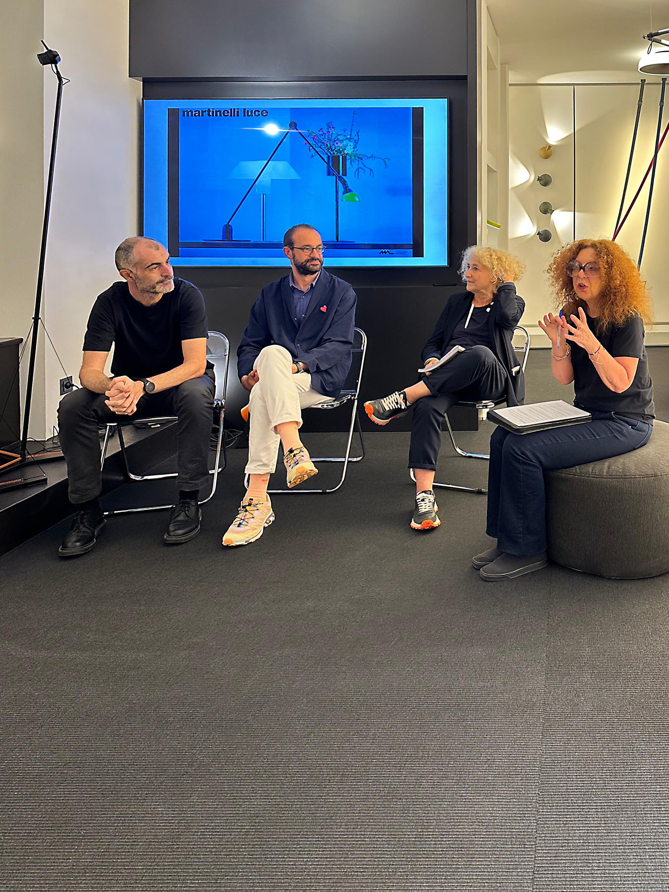 Presso il nostro showroom di Milano si è tenuto il Press Day, anticipato da uno stimolante "Small Talk" dedicato alla grafica e alla comunicazione del design. L'incontro, moderato dalla giornalista Paola Carimati, ha visto protagonisti Emiliana Martinelli, Luca Pitoni e Davide Di Gennaro, co-founder di Tomo Tomo, che hanno condiviso visioni, esperienze e intuizioni sul ruolo fondamentale della grafica nel panorama del design.