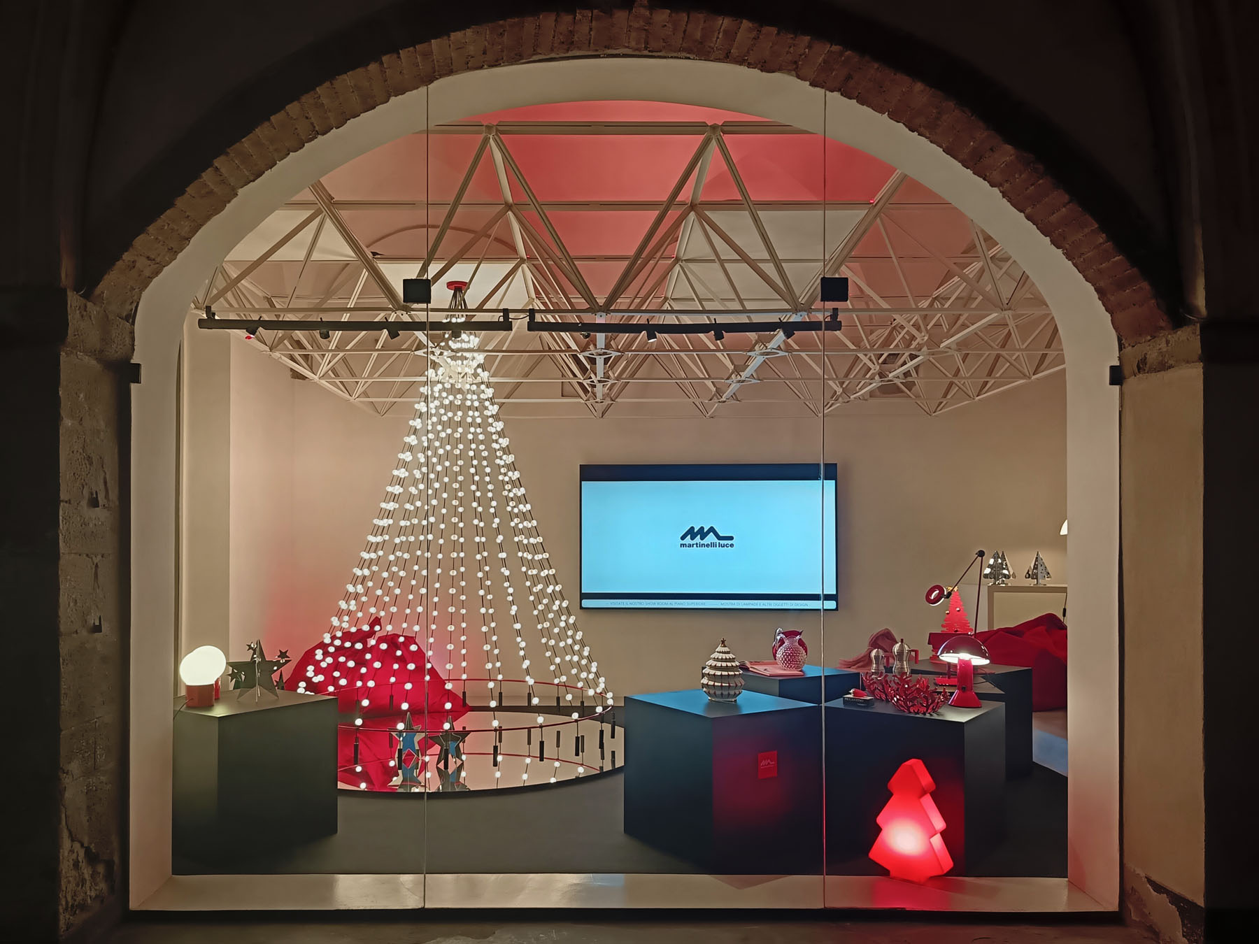 Oltre alle lampade realizzate da Martinelli Luce, presso lo showroom sono esposti, ed in vendita, anche oggetti e complementi di arredo selezionati fra i migliori marchi nazionali e internazionali. Gli allestimenti sono curati direttamente dall'architetto Emiliana Martinelli.